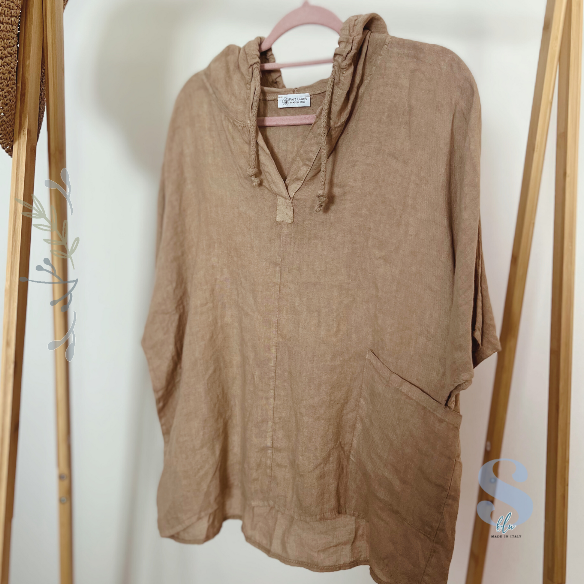 Features: 100% linen / Hooded neckline / Side slits / Soft feel / Ethically made in Italy